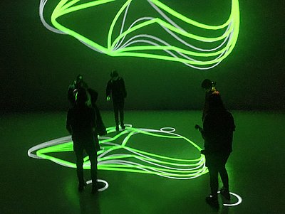 Dafür entwickelten die Studierenden in der Lehrveranstaltung "AEC Deep Space" (Leitung: Gerhard Funk, Holunder Heiß) immersive, interaktive Arbeiten für den Deep Space durch die es den BenutzerInnen ermöglicht wird, gemeinsame ästhetische Erlebnisse zu erzeugen. Den Zeitplan finden Sie ganz unten.