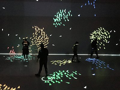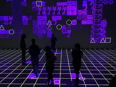 Das Projekt "RGB-Raumfahrt" konzentriert sich auf die Magie, die von zahlreichen reaktiven Teilchen im Weltraum erzeugt wird. In der immersiven Atmosphäre mit Planetenmotiven kann man die kleinen Formen, die den größten Teil der Oberfläche bedecken, austauschen und beobachten, wie sie sich unter den Benutzern verteilen und ein farbenfrohes Spektakel bilden.