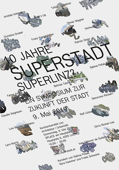 2019, nach 10 Jahren Superstadt, stellt sich das Symposium selbst in Frage. Von der Sozialen Revolution (2009) bis zur Revolte (2017) wurden bei Superstadt die wichtigsten Themen von Stadt und Stadtplanung diskutiert und wurde die gebaute Realität ebenso reflektiert wie eine mögliche Utopie von Linz und anderen Städten. Das 10-jährige Jubiläum wird zum Anlass genommen, um folgende Fragen zu stellen: Was hat sich seit 2009 verändert? Und was können wir von der Zukunft erwarten? In Linz, Athen oder Brüssel?