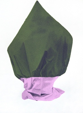 So ist auch die Arbeit Faltenform zuerst als Eindruck bei einem Spaziergang entstanden. Sie entwickelte sich dann zu einer Malerei, in der das Abstrakte des Objekts hervorgehoben wurde. Schlussendlich entstand der Siebdruck, der nun vorliegt und die farbliche Komposition abermals auf eine weitere Ebene verschiebt, die wiederum andere Aspekte der Abstraktion des ursprünglichen Objekts sichtbar macht.