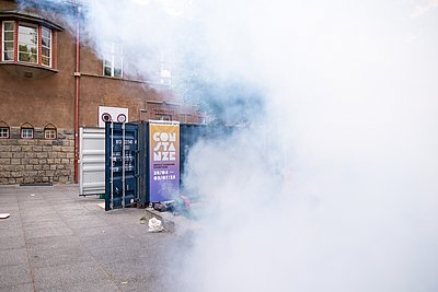 Stranded on the asphalt lie two sea containers. The port is far from water. Dense steel constructions confronted with a new spatial structure. Until the next cargo ship calls at the beginning of summer, a temporary art space will be created here. With a total of nine weekly changing exhibitions, students from the Department of Sculptural Conceptions / Ceramics of the University of Art Linz show how different forms, whether hard, fluffy, soft-boiled, or pastel-like, can reach a boiling point of exploration and inquiry. On Fridays, complex sounds such as noises and word fragments are emitted around the steel boxes. Invited sound generators, performers and silent masses will create an atmosphere for us to head off into the twilight until the doors of the boxes are closed. To be opened up once more, in a new light, on the following Tuesday.