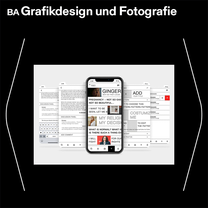 The Bachelor's degree course in Graphic Design and Photography enables students to work with various analog and digital media in the field of visual communication. In addition to learning formal technical skills in the areas of printmaking, typography, photography and new media, they are encouraged to explore the limits of visual communication and to meet the increasing demands and complexity of the discipline with content-related and conceptual approaches.