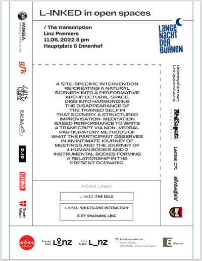 L-INKED in open spaces is a part of the production L-INKED. a co-production by Jaskaran Anand, trivium and imagetanz / brut wien.