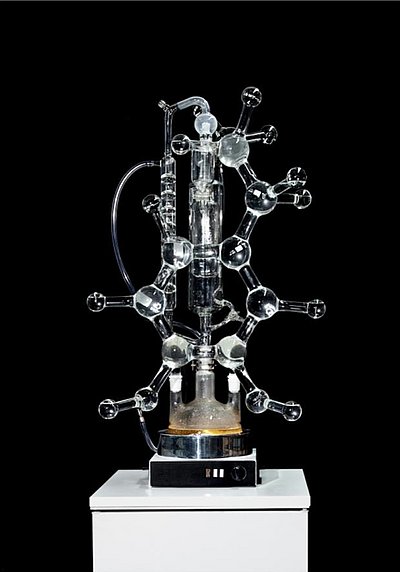 Thomas Feuerstein works using media such as sculpture and installation as well as graphic art, painting, photography and net art, creating multilayered references to biology, the philosophy of science, economics, and cultural history in the process. His artistic production is characterized by engagement with a wide spectrum of theories and their aesthetic assimilation. He uses natural scientific methods to interlock the factual and the fictive in his processual installations, deconstructing scientific explanatory models' claims to truth and prompting new contexts of meaning. Chemical- physical processes become metaphors of social structures; ideas from classical philosophy combine with phenomena from today's highly technological world in the field of research DAIMONOLOGY, developed by Feuerstein.