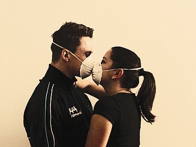 Future Kiss is a happening that involves interaction among participants wearing masks, equipped with a vibration chip and a kiss detector. The participants try to find each other's ‘half’ by kissing. The work imagines interaction between humans in the technology-mediated environment of the future, cleansed of all ‘unhygienic’ bodily ingredients, including the immediacy of different skins touching. The mask here serves as a mediator in the sensual, but also emotional exchange: on ‘detecting’ a kiss, the sensor activates a gentle vibration that is also an emotion in abstracted form or a simulation of emotion. The mask is capable of vibration only if participants find truth love. In the other case it doesn't work and they can't feel anything.
