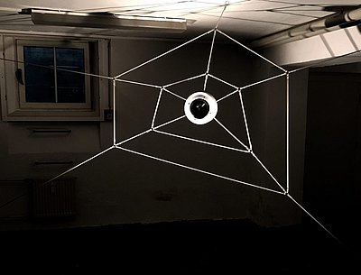 Netz 2.0 is an interactiv sound sculpture. Reminding of spider nets, it sits in corners and structures. Pulling single strings generates real-time sonic output, played back through the fat speaker in the middle.