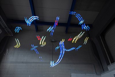 The development of the services and applications in the shared airspace and the lack of awareness in terms of its potential community use, has started the creation of "Aerial Media Arts". Ongoing research has in "swarm robotics" the main tool for artistic investigation, performance and dataset visualization for the community.