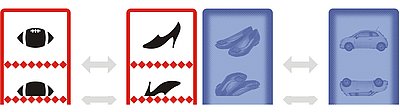 Mit den Karten des „Kontextquartettes“ erfahren die BesucherInnen spielerisch, dass der visuelle Auftritt der Spielkarten die Auswahl der inhaltlich zusammengehörigen Zeichen erschweren beziehungsweise erleichtern kann. Die Funktion der Abstimmung derartiger Gestaltungswerte zur Bildung von Zeichenfamilien und Leitsystemen wird mit diesen Karten praktisch getestet und analysiert..
