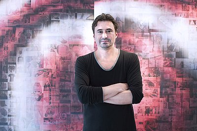 For more than 20 years, Pascal Dombis has been using computers and algorithms to produce excessive repetition of simple processes. By computationally reproducing a geometrical or typographical sign, he creates destructuring structures and develops irrational environments. He exploits the paradoxical coexistence of orderly control and chaotic aleatory forces to produce unpredictable, unstable and dynamic visual forms which he synthesizes into digital wall drawings, lenticular pieces or video installations.