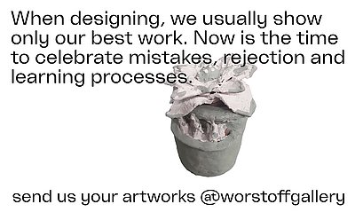 Often in graphic design we do only celebrate our best works, but forget about all the good ideas that get lost in the process, the fails we need to become better and our designs, which simply got rejected by clients or juries. Now it’s time to embrace the failings, the process, the rejection and the unwanted designs and we would love to show of your artworks. Take part in shifting the mindset from only showing your best work to showing the path of trail and error and participate by sending us your designs on Instagram @worstoffgallery or to worstoffgallery@gmx.at.