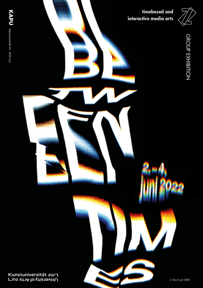 al Dahab (Animation), Sofia Jüngling-Badia // Alphabet (Installation), Tolga Karaaslan // Berührt (Videoinstallation), Patricia Göckert // Between Times (Acrylic on canvas), Carlotta Borcherding // bug ost (Installation), Valentin Vojka // bloom (Installation), Ivo Cerwenka // downside up (Video installation), Leon de Haas // Gegenstrom (Photo), Chiara Estella/ Ivo Cerwenka/ Patricia Göckert // Irgendwas Dazwischen (Film), Carlotta Borcherding // Kirche 2.0 (Installation), Verena Steininger // Krisenherd (Installation), Lisa Studener // Locked (Film), Chiara Estella // Membran (Video performance), Emilia Vogt // multiportrait (Video installation), Carlotta Borcherding // Normalize Normal Things (Photo series), Patricia Göckert // Pain of Passion (Film), Friederike Weber // SMD22 (Installation), Chiara Estella // Sound and Touch (Performance), Emilia Vogt // Strömungen (Film), Tolga Karaaslan // Sisyphus/Suhpysis (Video installation), Emilia Vogt // This is the End of Us (Film), Valentin Vojka // virtual fossil (AR Sculpture), Alberte Spork // VRA_peek (AV Performance), Daniel Haas // VRA_split (AV Installation), Daniel Haas // wäx (Performance), Alba Diaz/ Emilia Vogt/ Patricia Göckert/ Lisa Studener // 13 (Poster), Ania Böhaker