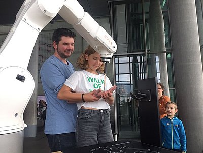 An der Abteilung Creative Robotics entwickelten die Industrial Design Studierenden Bettina Fuchs und Sofia Prinz das Projekt “Lormbot”, bei dem diese Kommunikationstechnik mittels eines KUKA Roboters umgesetzt wird. Das Projekt wurde im Rahmen der Thementour „Wie viel Technik bin ich?“ bereits im Ars Electronica Center live erfahrbar gemacht.