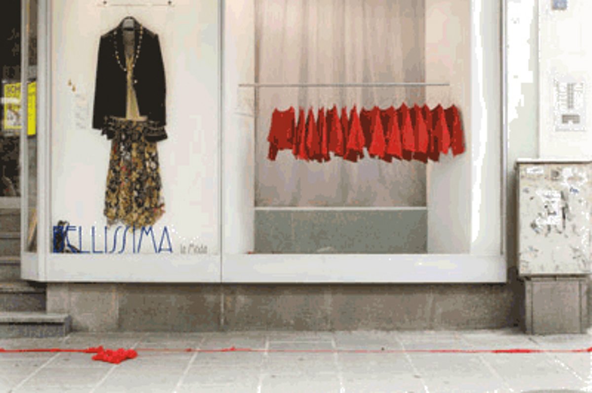 Das interne Konzept des Studienbereiches legt den Focus auf die besondere Beziehung zwischen Drinnen und Draußen; das Verhältnis von Schaufensterraum und realem Vor-Raum soll mit Witz, Ironie und doppeltem Boden thematisiert werden. Zu entwickeln waren künstlerische Strategien, die Fragen nach der Veränderung dieses Verhältnisses aufwerfen, Gewohnheiten stören, irritieren. Gefragt waren performative Aktionen, ungewohnte Bewegungsabläufe, Standortveränderungen.