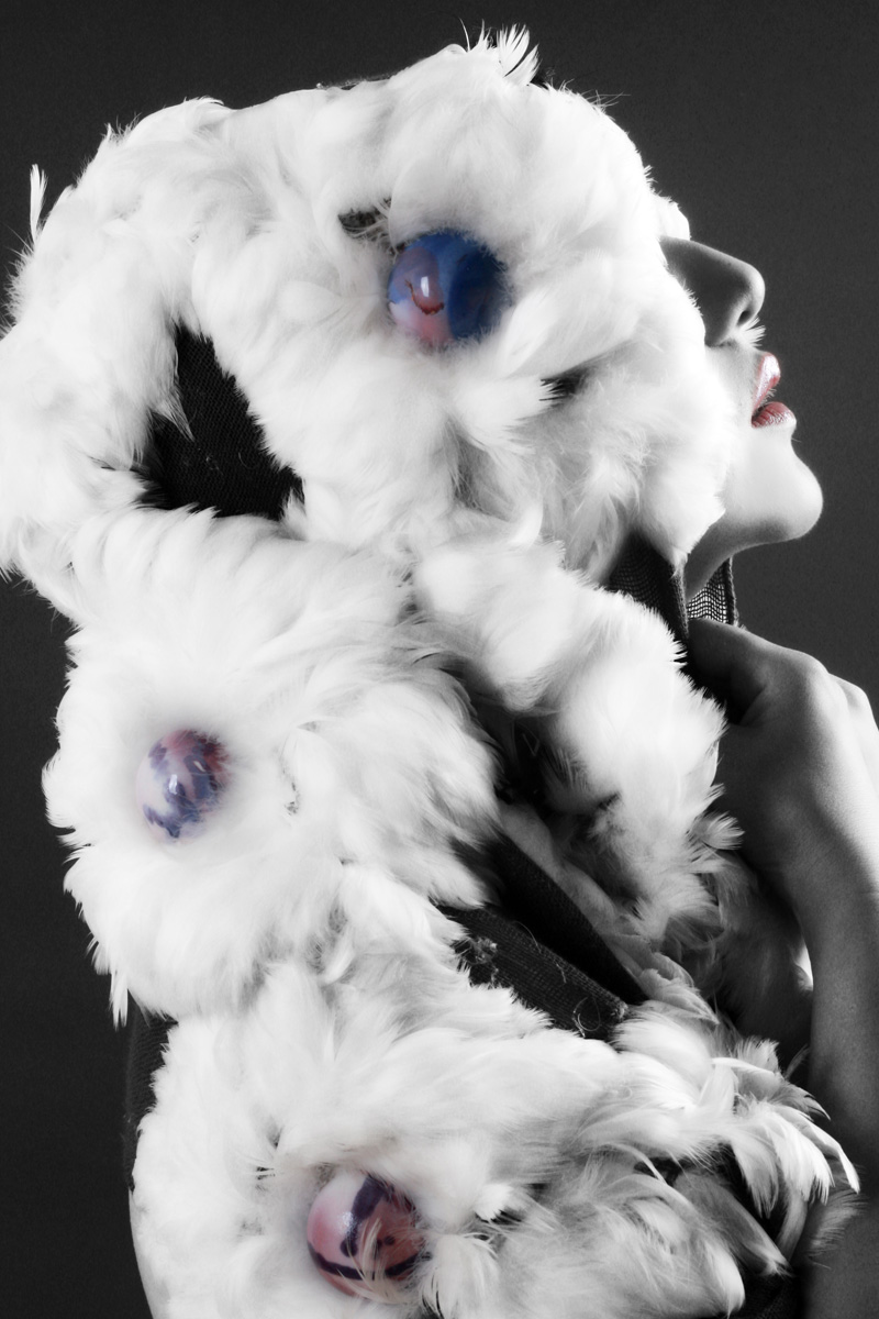 Schmuck ist ebenso wie Kleidung eine Form der Kommunikation und Ausdrucksmittel, um sich in einem bestimmten gesellschaftlichen Umfeld zu integrieren oder sich davon zu differenzieren. In Hawai heißt Vagina "Punami", was übersetzt "himmlische Blüte" bedeutet. In einem japanischen Lied der Geishas wird das weibliche Geschlechtsteil als Blume besungen. Junge Geishas schminken sich nicht nur ihr Gesicht, sondern tragen auch im Nacken Bemalungen, welche Schamlippen symbolisieren. Ältere Geishas hingegen haben es nicht mehr nötig, sich hinter einer Maske zu verstecken und verzaubern durch ihre natürliche Anmutigkeit. Als Inspiration für die Malerei auf dem "Kimono" aus Seide, dienen Elke Punkt Fleisch medizinische Illustrationen der Vagina, welche so arrangiert sind, dass daraus Blumenmuster entstehen.