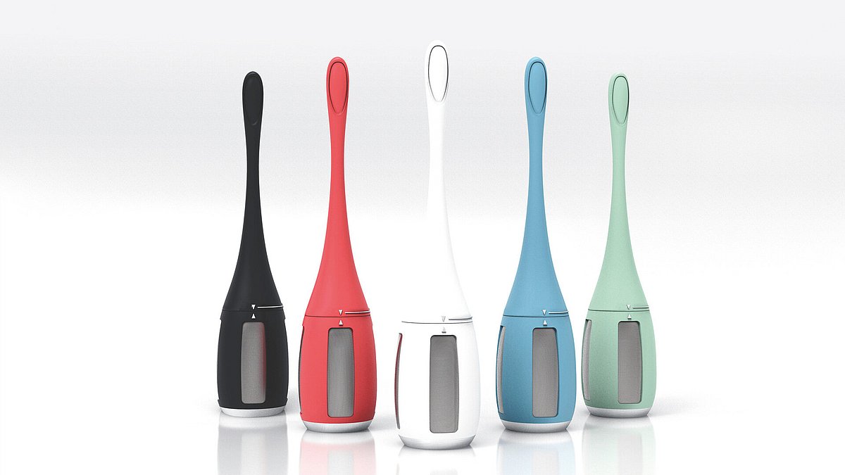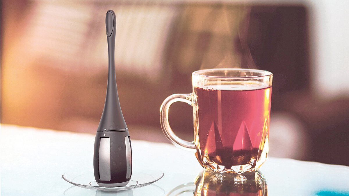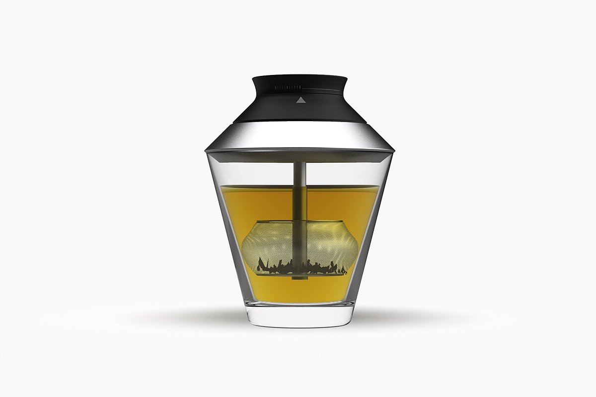 „Tea Ally“ ist ein Teeaufsatz mit integriertem Teesieb, Eieruhr und Siebablage und erleichtert die Teezubereitung im Alltag. Zuerst wird das Sieb befüllt und der Deckel verschlossen und danach der Aufsatz auf das bereits mit heißem Wasser gefüllte Gefäß gesetzt. Dabei taucht das Teesieb ins Wasser ein. Nun wird die optimale Ziehzeit an der im Griff integrierten Eieruhr eingestellt. Ist diese um, klingelt die Uhr und der Einsatz kann herausgenommen werden. Dazu wird der Griff des Aufsatzes nach oben gezogen, das Teesieb fährt hoch und wird dabei an die Deckenwand des Aufsatzes gepresst. So wird der Teesatz nicht nur vom Wasser getrennt, sondern auch gleich ausgedrückt, wodurch die letzten im Teesatz verbliebenen Aromen in das Getränk fließen. Der Aufsatz kann nun einfach abgenommen, umgedreht und zur Seite gestellt werden - und das vollkommen tropffrei und sauber.