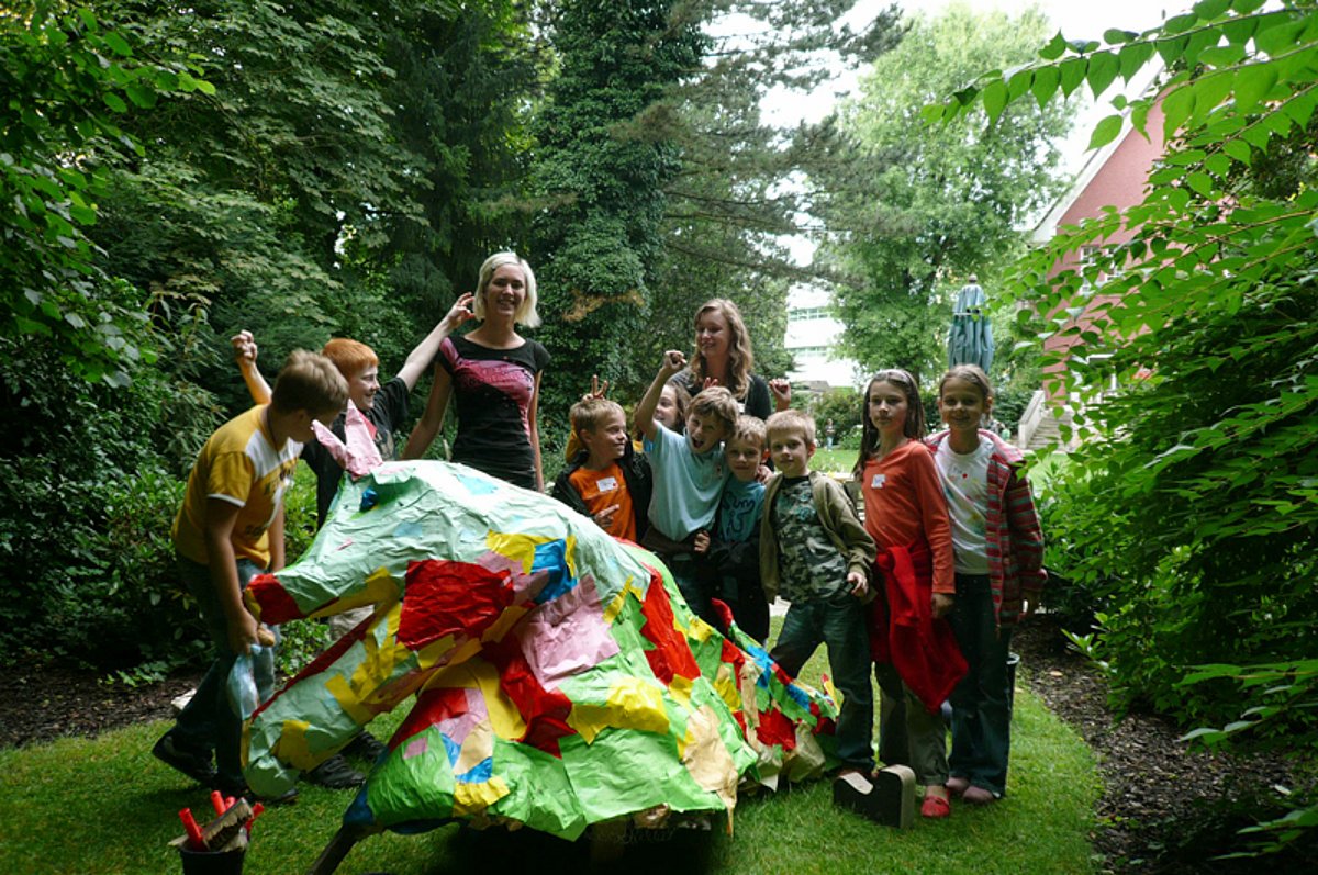 Während der Projekttage realisieren die Kinder vier Tage lang umraumbezogene Bildende Kunst im Freigelände des Museums. Betreut werden sie dabei von Studierenden der Kunstuniversität Linz.
