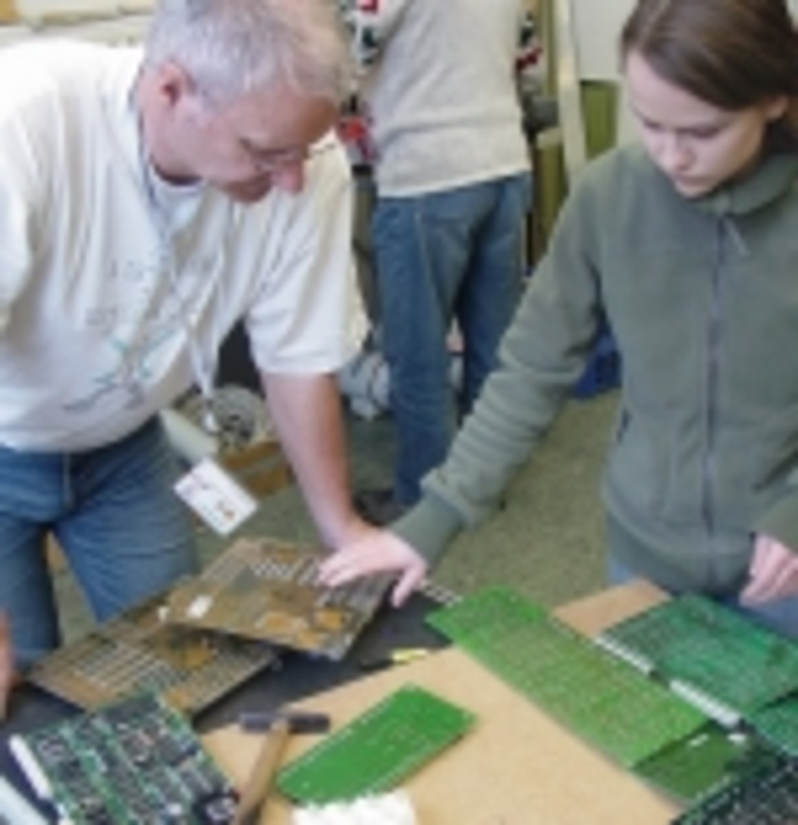 Mitgebrachte ausrangierte Platinen, Feuermelder, Kabel, Steckelemente, Bedienungsanleitungen etc. aus dem Arbeitsalltag der Mitarbeiter von Siemens wurden zerschnitten, verbogen, etc. und zu dreidimensionalen Objekten zusammengefügt. Dahinter stand die Idee, Gegenstände die selbst schon eine Geschichte haben aus dem Arbeitsalltag der Siemens-Mitarbeiter, die durch ihre eigene Lebens- und Arbeitsbiografie involviert sind, neu und anders zu betrachten.