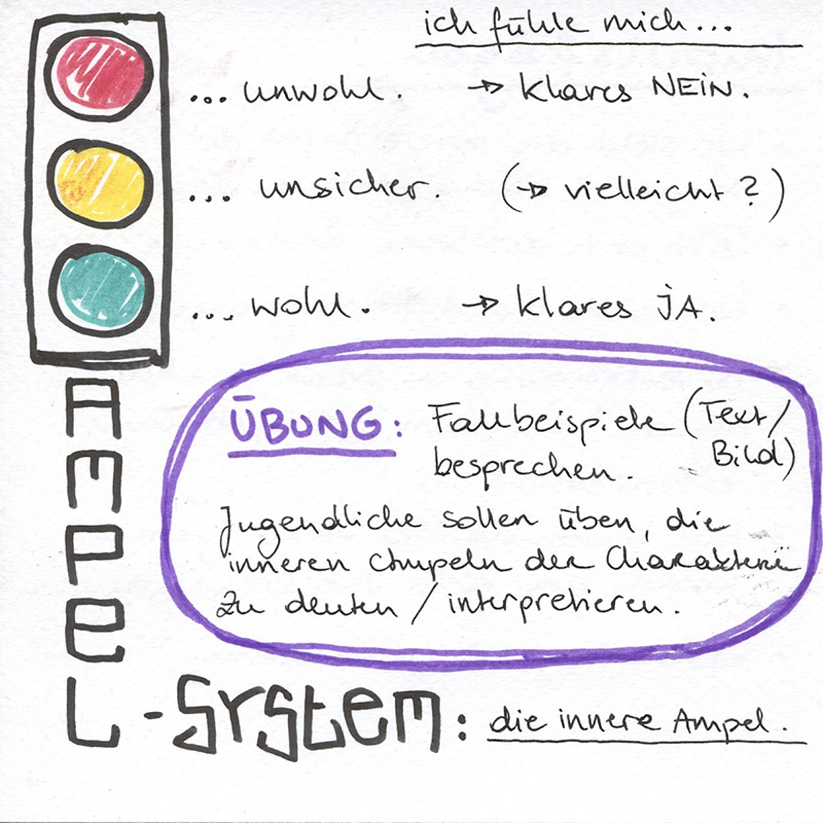 Grafic Recording von Katharina Killinger (Ausschnitt) zum Vortrag „Nein heißt nein!“ von Angela Koch