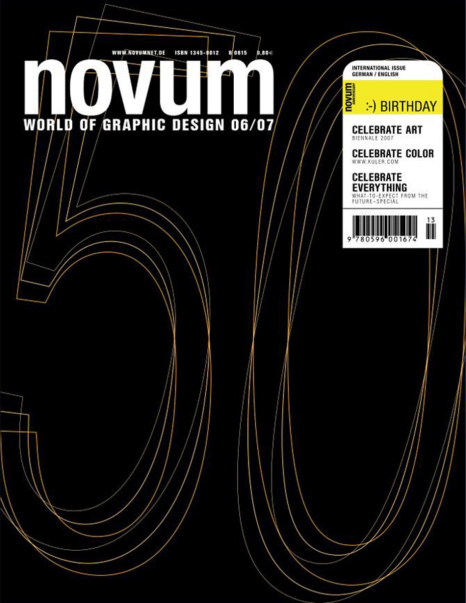 Die Studenten entwarfen Titelbätter für die Grafikzeitschrift "novum" - WORLD OF GRAPHIC DESIGN (nur in Vektoren). Als inhaltlicher Schwerpunkt war aus den Themen zu wählen: "50 Jahre novum" und "Typografie".