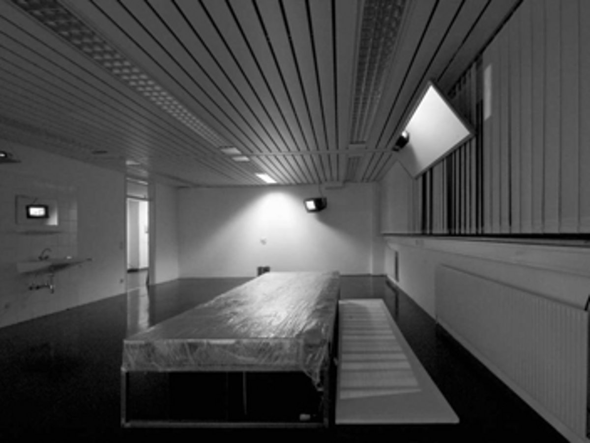 In experimentellen Versuchsanordnungen wurden verschiedene Aggregatzustände und das Mischverhalten der beiden Stoffe erforscht. Das Tropfen von Wasser in ein Waschbecken erzeugt einen starken Spannungsgrad. Aus dem Wasser- wurde ein Blutstropfen um die Verletzlichkeit der Versorgungssysteme zu zeigen. Das abtropfende Blut ist eine Spende der KünstlerInnen - mit der Entscheidung, die Essenz des Raumes wirken zu lassen, wird seine Organhaftigkeit im Gebäude als Organismus in den Vordergrund gestellt.