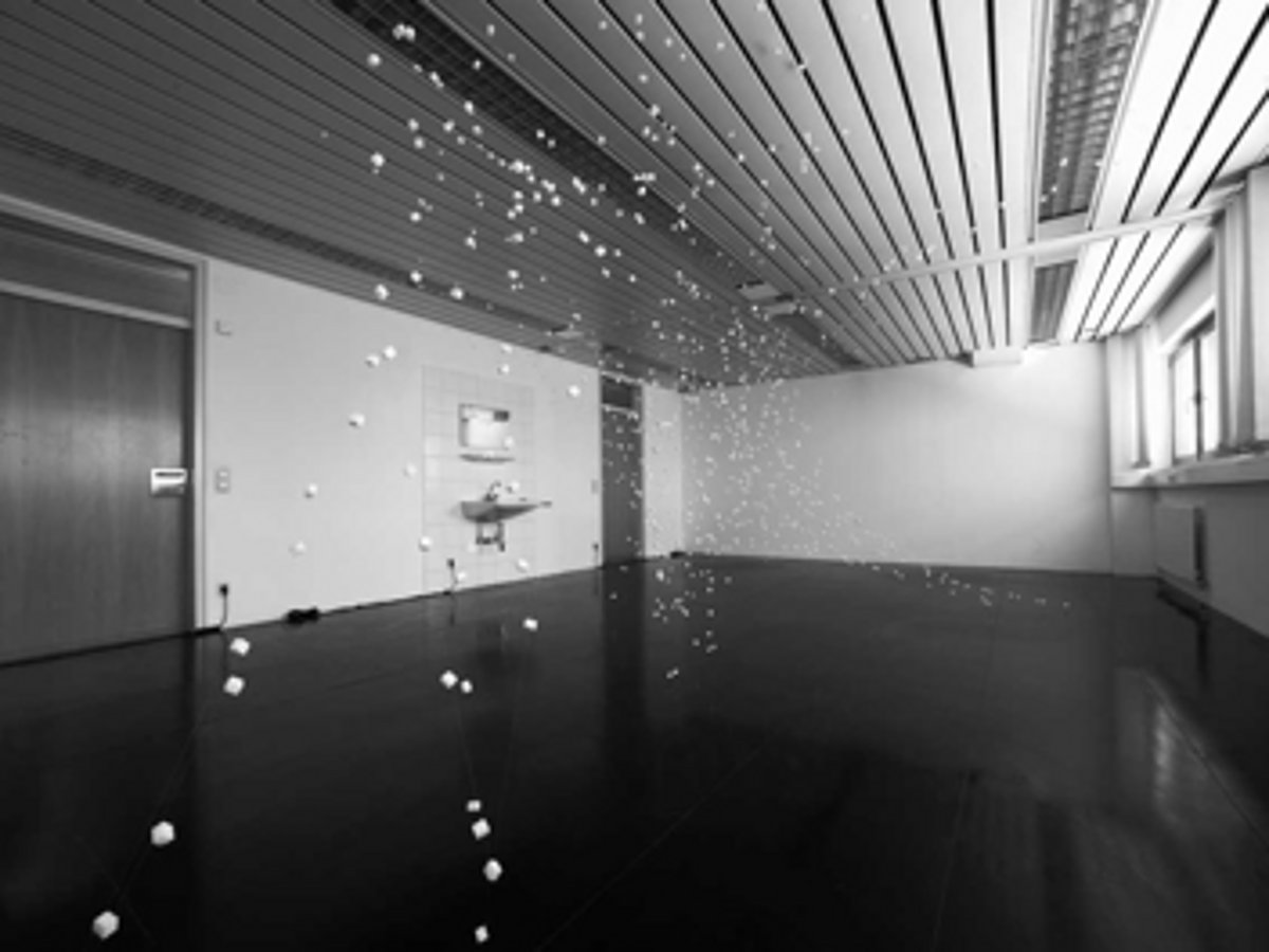 Überproduktion und schwer durchschaubare industrielle Prozesse beherrschen die gegenwärtige Nahrungsmittelerzeugung. Die Mechanismen globaler Lebensmitteldistribution, die den Paradigmen der Industrieländer gehorchen, führen zu einem Wertewandel im Umgang mit Nahrung. Im Verlauf irreversibler Prozesse transformieren organische Ausgangsprodukte sowohl zu Nährstoffen als auch zu industriellen Werkstoffen. Diese Prozesse werden zum Startpunkt einer Installation, die über den Verlauf der Ausstellung den Raum und seine sinnliche Erfahrbarkeit substantiell verändert: 500 kg Mais werden mit einer elektronisch und hydraulisch transformierten Waschmaschine in 10 Tagen in 20 m_ Popcorn verwandelt.