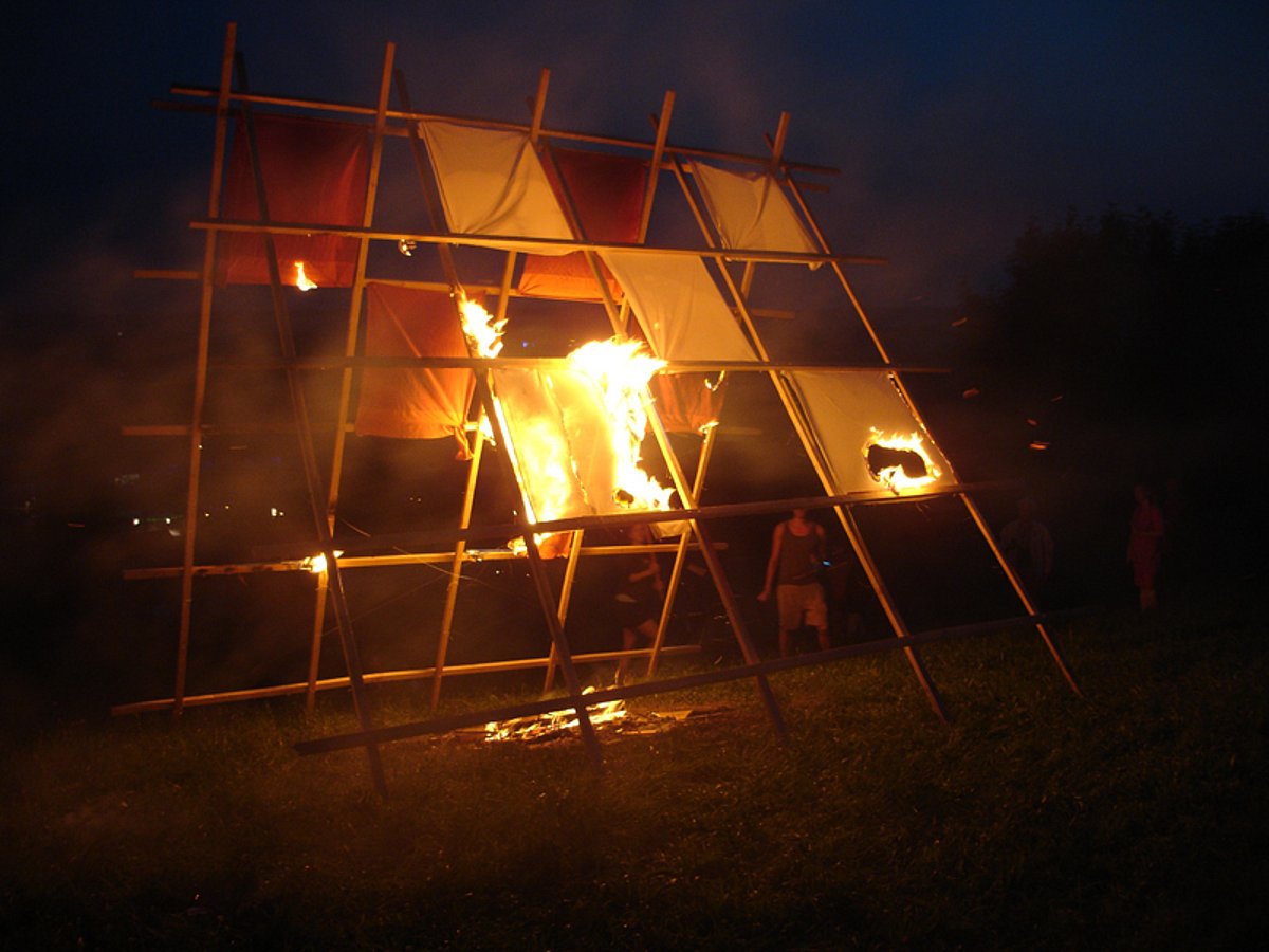 Eine besondere Herausforderung war das Anzünden der Fackeln im Freien. Immerhin wurden ja 350 Fackeln benötigt, um in die Figuren in Flammen zu setzen. Die Studierenden des ersten Jahrgangs konnten also Erfahrungen noch und nöcher sammeln, auch über die physikalischen Grundlagen und die Pyrotechnik.