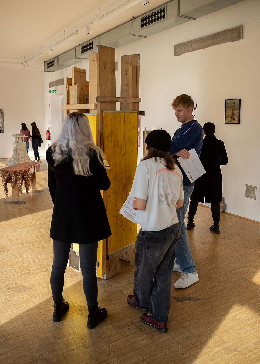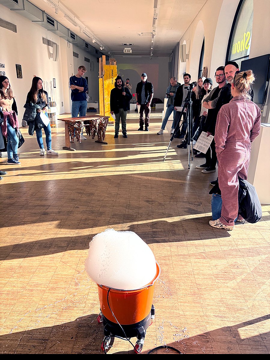 Show Show war Einladung und Geste zugleich: ein Sich-Zeigen, ein Auftreten, ein Teilen von Praxen und Positionen. Die Ausstellung öffnet einen Resonanzraum, in dem Lehre, Forschung und künstlerische Arbeit ineinandergreifen. Studierende, Kolleg*innen und Interessierte warn eingeladen, diesen Moment der Präsenz mitzuerleben – unmittelbar, offen, gemeinsam.