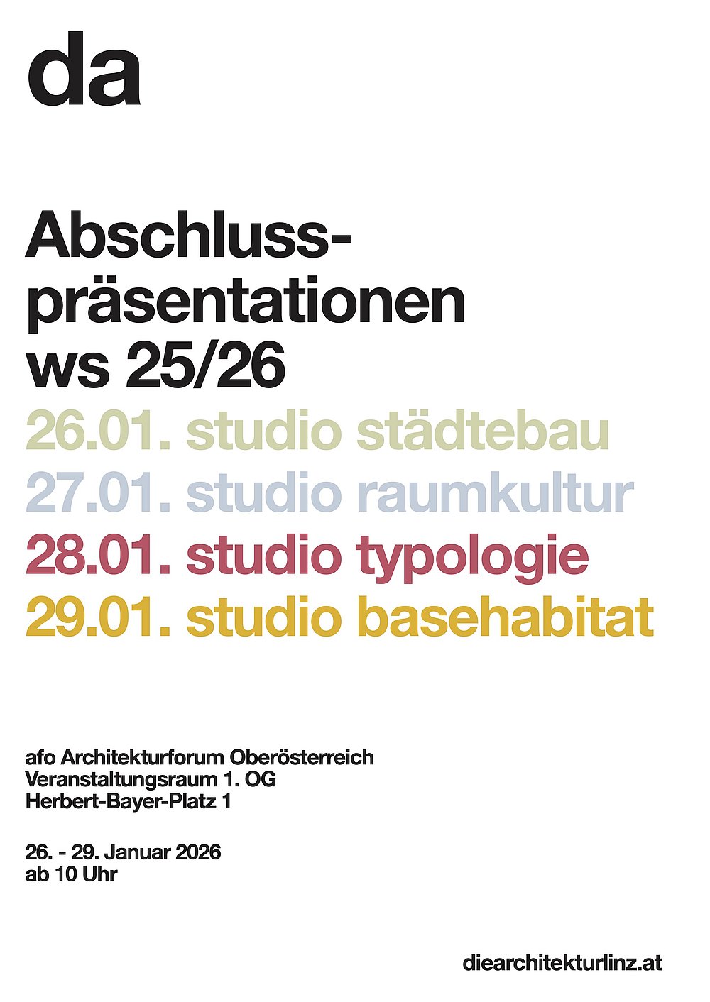 26. bis 29. Jänner 2026 afo architekturforum (1. OG), Herbert-Bayer-Platz 1, 4020 Linz