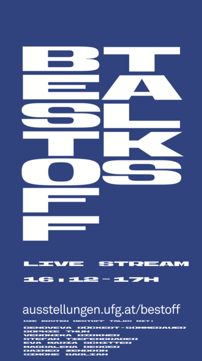 Um das Warten auf die BestOFF-Ausstellung zu verkürzen, laden die KuratorInnen Rainer Zendron und Simone Barlian ein- bis zweimal im Monat zwei externe Gäste (ExpertInnen aus Kunst/Architektur/Design-Institutionen sowie ExpertInnen aus der freien und Off-Space-Szene) und vier beitragende KünstlerInnen und GestalterInnen der BestOFF 2020 zu einem interdisziplinären Podiumsgespräch, welches ZuseherInnen im Live Stream verfolgen können.