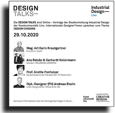 Die Abteilung Industrial Design lädt herzlich zur Online-Teilnahme an den DESIGN TALKS zum Thema "Design Careers" ein.