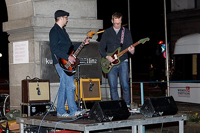 Die symmetrische Anordnung der Brückenkopfgebäude am Linzer Hauptplatz und die spiegelbildliche Gleichheit der beiden Fassaden sind Ausgangspunkt einer ortsbezogenen Intervention von Hubert Lobnig und Moritz Matschke, welche die Vorliebe von totalitären Systemen für simple Formen der Symmetrie reflektiert. Die Filme, die von zwei Projektoren gleichzeitig an die beiden gegenüberliegenden Fassaden geworfen werden, bringen die Architektur aus dem Gleichgewicht und kehren ihr Inneres nach außen. Zwei spiegelgleiche Figuren in den Fenstern sind am Taubenschlag zu hören, Sister Ray variieren Themen und Riffs aus der Filmmusik zu Dead Man von Neil Young.