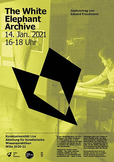 Freudmanns Gastvortrag zu "The White Elephant Archive, Setting No. 3" im Rahmen des Seminars Researching the Self ist eine Einladung, weiter über die politische Natur von Familienarchiven nachzudenken und über die Strategien, die der Künstler anwendet, um die Löcher, Referenzen und Geschichten zu erforschen, die mit seiner eigenen Biografie verbunden sind. Weiters ist es eine Einladung, die Politik der Gedächtniskonstruktion im österreichischen Kontext zu überdenken.