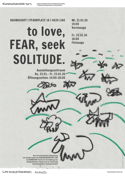 Die Ausstellung zeigt künstlerische Beiträge von Studierenden an der Kunstuniversität Linz, die verschiedene Räume der Einsamkeit, des Alleinseins und des Rückzugs erkunden. Dabei wird die Vielschichtigkeit ihrer Funktionen und Eigenschaften erlebbar: So erzählen die Arbeiten von inneren Zuständen, Melancholie und Sehnsüchten, psychologischen Motiven, Techniken des Sich-Entziehens, Schutzräumen und Self-Care, Inkubationsphasen und konzentrierten Schöpfungsprozessen wie Ausgrenzungsmechanismen und Marginalisierung. Es eröffnet sich ein Spannungsfeld, in dem Fragen von Ein- und Ausschluss diskutiert und Erfahrungen von Verbundenheit, Isolation und (innerer) Bewegung neu verhandelt werden.