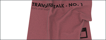 Der Transfer Talk #1 (Konzept Marius Schebella) widmet sich dem Thema Textil und Sound. Durch Statements, Projektvorstellungen und offene Diskussionen sollen Gemeinsamkeiten und Unterschiede von Mode und Musik erörtert und Schnittstellen zwischen beiden Bereichen aufgezeigt werden. Dabei geht es um textile und akustische Materialien und Techniken ebenso wie um Konzepte, Strategien und Eigenheiten der jeweiligen künstlerischen Praktiken.