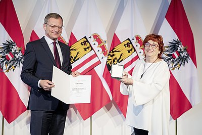 Mit diesen Worten würdigte Landeshauptmann Mag. Thomas Stelzer die aus Oberösterreich stammende Medien- und Performancekünstlerin VALIE EXPORT. Anlässlich ihres 80. Geburtstags am 17. Mai 2020 wurde ihr am 1. September 2020 im Linzer Schlossmuseum nachträglich das Verdienstkreuz des Landes OÖ für Kunst und Kultur überreicht.