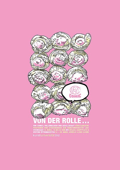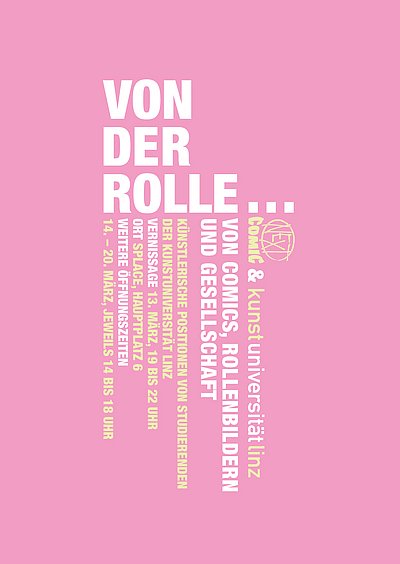 Im Rahmen der Lehrveranstaltung „Comics ausstellen – aber wie?“ widmeten sich Studierende der Fachrichtungen Bildnerische Erziehung (BE), Mediengestaltung (MG), Plastische Konzeptionen und Keramik (PKK) sowie Visuelle Kommunikation (VK) aus unterschiedlichen Perspektiven dem diesjährigen Motto des NEXTCOMIC-Festivals: Rollenbilder.
