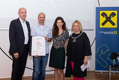 Der Preis wurde in feierlichem Rahmen der Sponsion von Dr. Bernhard Marckhgott, Leitung Konzernkommunikation der Raiffeisenlandesbank Oberösterreich der Rektorin der Kunstuniversität Linz, Brigitte Hütter und der Vorstandsvorsitzenden des forum - Kunstuniversität Linz Katharina Kloibhofer an den Künstler Rainer Nöbauer-Kammerer übergeben.