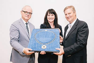 Foto © Florian Voggeneder; von li nach re: Univ.Doz.Dr. Friedrich Prischl (Präsident der Medizinischen Gesellschaft OÖ), Univ.Prof. Dr. Petra Apfalter (Kassenverwalterin der Medizinischen Gesellschaft OÖ), Univ.Prof. DDr. DI Mag. Josef Kramer (Sekretär der Medizinischen Gesellschaft OÖ)