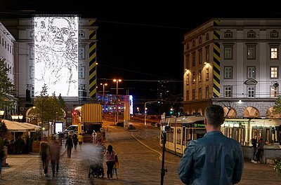 Das Fassadenprojekt von Christa Sommerer und Laurent Mignonneau gelangte unter die Top 3 Einreichungen des MAB 2020 Award, in der Kategorie "Participative Architecture".