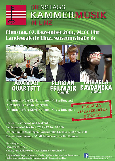 Die Ausführenden sind das Adamas Quartett und Florian Feilmair, Klavier