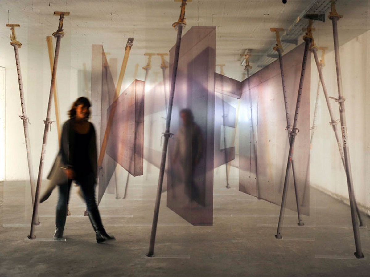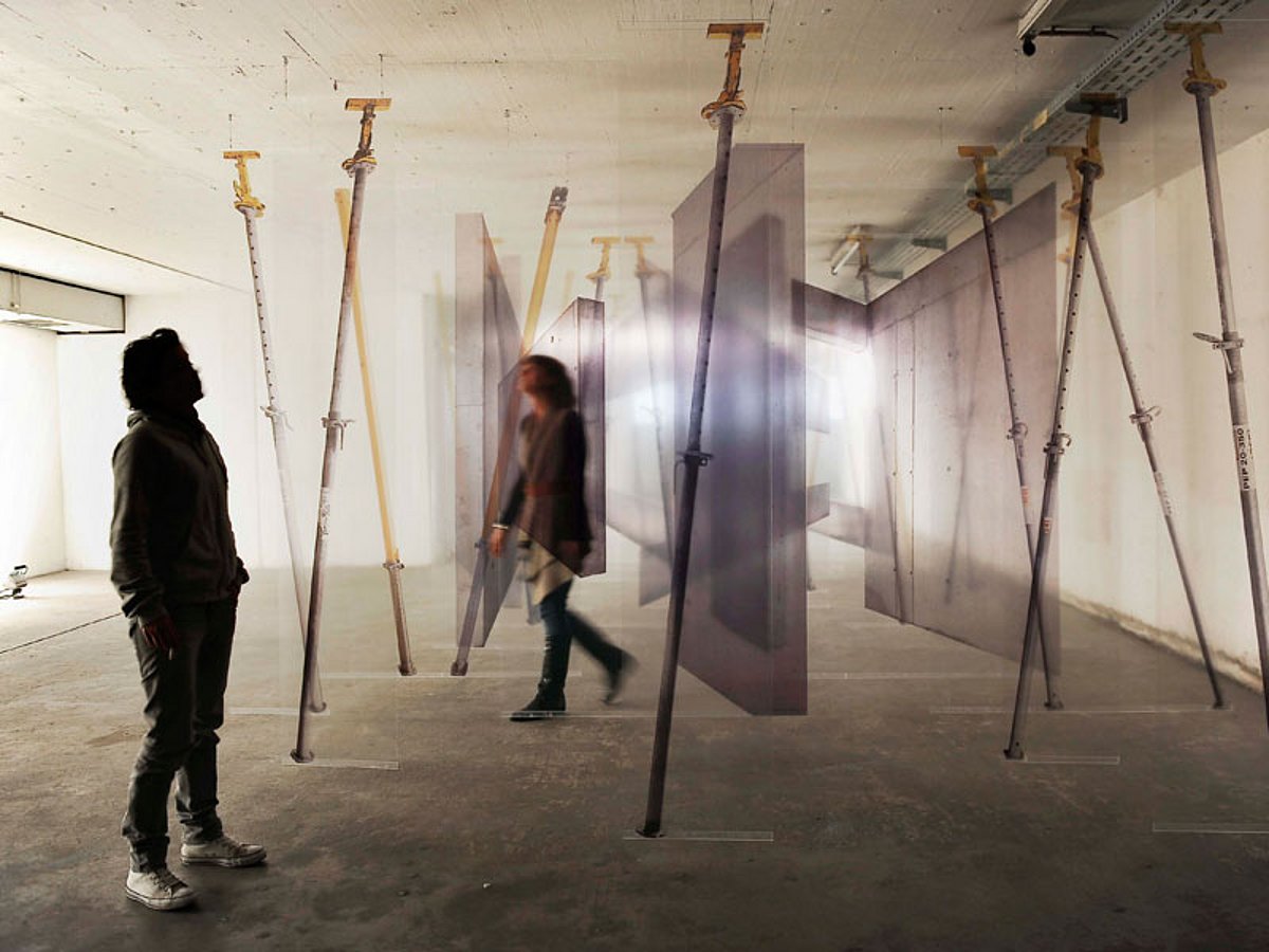 Die Transparenz der Bahnen ermöglicht Blickperspektiven, die durch mehrere Aufnahmen passieren und die eine Betrachtung der Arbeit aus allen möglichen Perspektiven erlaubt. Dies erzeugt im Idealfall neue Bilder.