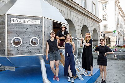 Im Rahmen der BestOFF ist auch das Kulturraumschiff N.O.A.H. Galactica donauseitig vor dem Brückenkopfgebäude Ost am Hauptplatz 6 gelandet.