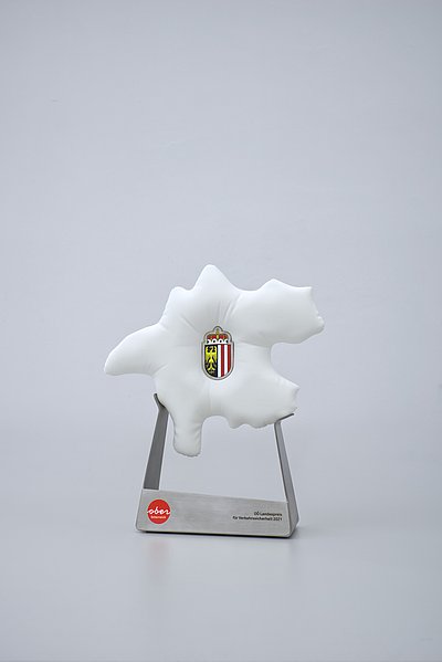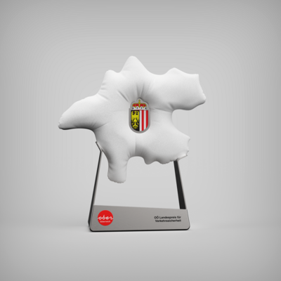 Studierende der Abteilung Industrial Design an der Kunstuniversität Linz haben die Trophäen gestaltet. Der Ansatz lautete, bekannte Symbole, die einerseits für Verkehr und andererseits für Oberösterreich stehen, miteinander zu verbinden. Daraus entstand schließlich ein Airbag in Form der Silhouette des Bundeslandes. „Ein einmaliges Wiedererkennungsmerkmal“, erklärt Matthias Stütz, der das Projekt gemeinsam mit vier Kolleginnen und Kollegen umgesetzt hat.