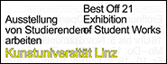 es gehört mittlerweile zu den schönen Traditionen der Kunstuniversität Linz, das Wintersemester mit der Jahresausstellung BestOFF zu beginnen. Von 21. Oktober bis 5. November zeigt die Studierenden-Werkschau insgesamt 21 unterschiedlichste Arbeiten, kuratiert von Angela Stief, Direktorin von Albertina Modern. Wir bitten um Anmeldung, wenn Sie an der Ausstellungseröffnung teilnehmen möchten und laden Sie herzlich dazu ein.