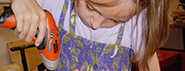 Bei regelmäßigen Besuchen in der Fachwerkstätte der Abteilung Technik & Design / Werkerziehung lernen die Mädchen aber auch Spezialmaschinen kennen und worauf man im Umgang mit Werkzeugen achten muss.