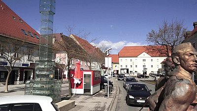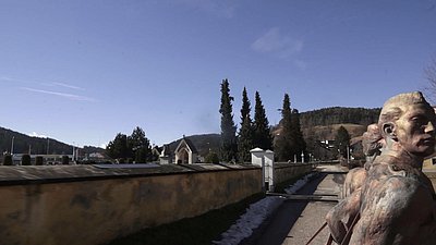 „Das Denkmal“ befindet sich in einem Seitental von Bad Eisenkappel/Železna Kapla, dem südlichsten Ort Österreichs, in unmittelbarer Nähe zur slowenischen Grenze. Auf 1000 Metern Seehöhe wird dort an den Widerstandskampf der Kärntner PartisanInnen erinnert – auf dem Areal eines ehemaligen Bauernhofs, dessen BewohnerInnen von Mitgliedern eines SS- und Polizeiregiments ermordet wurden. Auf diesem Areal, dem Peršmanhof, ist zudem ein kleines Museum eingerichtet. Ursprünglich war „Das Denkmal“ 1947 auf einem Friedhof in Völkermarkt/Velikovec errichtet worden. Fast 40 Jahre später wurden seine gesprengten Einzelteile am Peršmanhof wieder zusammengefügt und „Das Denkmal“ erneut aufgestellt. 2015 unternahm das Künstlerduo Six Petritsch einen „radikalen“ Ausflug von Bad Eisenkappel/Železna Kapla nach Völkermarkt/Velikovec. Warum dieser notwendig war, wird Thema des Gesprächs sein.