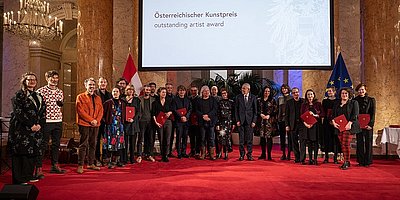 „Heute sind Superlative angebracht und genau richtig“, adressierte Kunst- und Kulturstaatssekretärin Andrea Mayer die Künstler*innen in ihrer Ansprache. „Diese Preise sind eine Anerkennung für absolute Spitzenleistungen, für künstlerische Ausnahmeerscheinungen und nicht zuletzt für Ihr Engagement und Ihre Hingabe, mit der Sie an Ihrer Kunst arbeiten. Denn Kunst, das künstlerische Schaffen, ist das Zentrum unserer Kultur, der kreative Kern des Kulturbetriebs.“