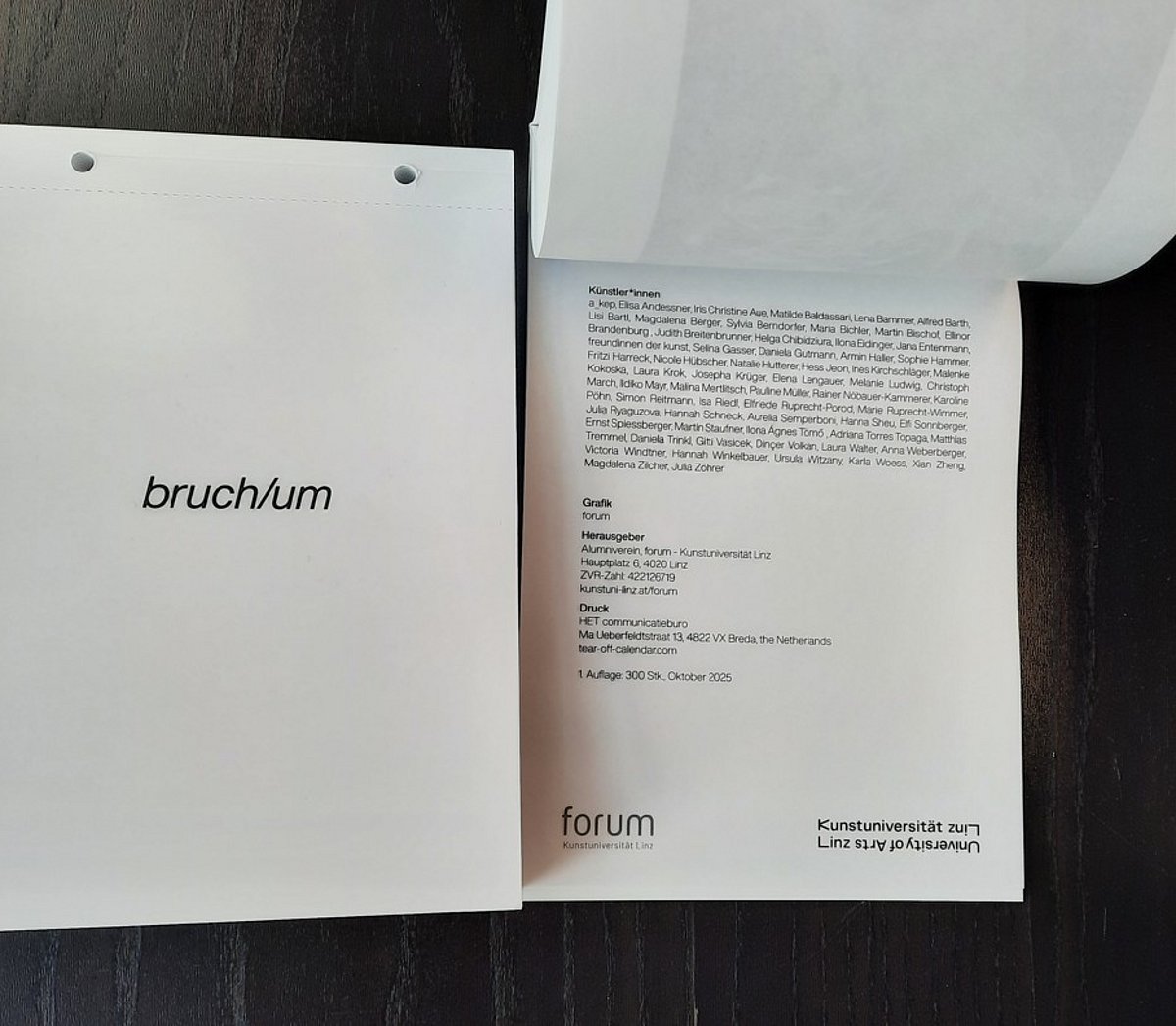 Das forum – Kunstuniversität Linz legt für das Jahr 2026 die zweite Ausgabe eines Jahreskalenders vor, der eine spannende Auswahl an Arbeiten von Mitgliedern des forums sowie Absolvent*innen, Studierenden und Lehrenden der Kunstuniversität Linz zeigt.