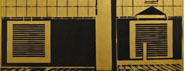 Auf goldenem Untergrund werden mit schwarzem Lack klare Skizzen generiert ,