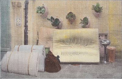 Monika Pichler verschmilzt visuell und stofflich die Ferne mit dem Alltag. Pichlers Montagen sind Reisen in Ausschnitte der Welt, irreal angeordnet, auf andere Realitäten verweisend. Sie fotografiert, sie sucht und sammelt Fotos, die sie zu neuen Räumen und in neue Konstellationen montiert, auf Stoff oder Holz transferiert.